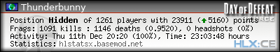 | Rank | Server | Kills | % | Ratio | Deaths | K:D | Headshots | Percentage of Headshots | % | HS:K |