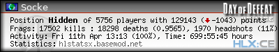 | Rank | Server | Kills | % | Ratio | Deaths | K:D | Headshots | Percentage of Headshots | % | HS:K |