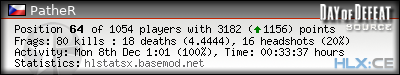 | Rank | Server | Kills | % | Ratio | Deaths | K:D | Headshots | Percentage of Headshots | % | HS:K |