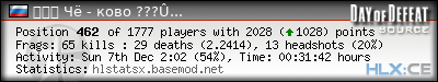 | Rank | Server | Kills | % | Ratio | Deaths | K:D | Headshots | Percentage of Headshots | % | HS:K |