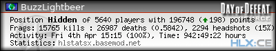 | Rank | Server | Kills | % | Ratio | Deaths | K:D | Headshots | Percentage of Headshots | % | HS:K |