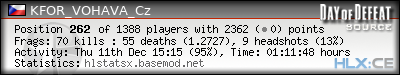 | Rank | Server | Kills | % | Ratio | Deaths | K:D | Headshots | Percentage of Headshots | % | HS:K |