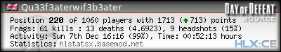 | Rank | Server | Kills | % | Ratio | Deaths | K:D | Headshots | Percentage of Headshots | % | HS:K |