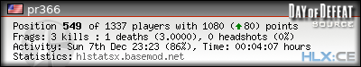 | Rank | Map | Kills | % | Ratio | Deaths | % | Ratio | K:D | Headshots | % | Ratio | HS:K |