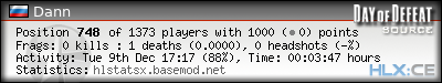| Rank | Map | Kills | % | Ratio | Deaths | % | Ratio | K:D | Headshots | % | Ratio | HS:K |