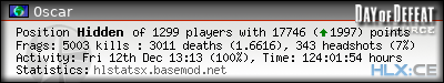 | Rank | Server | Kills | % | Ratio | Deaths | K:D | Headshots | Percentage of Headshots | % | HS:K |