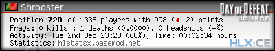 | Rank | Map | Kills | % | Ratio | Deaths | % | Ratio | K:D | Headshots | % | Ratio | HS:K |