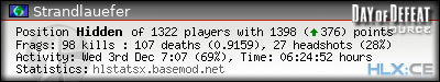 | 1 | »» 24/7 Sniper Server // by www.BASEMOD.net [EU] | 98 | 100.00% | 107 | 0.9159 | 27 | 100.00% | 0.2755 |