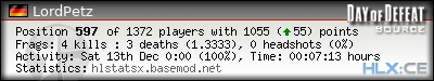 | Rank | Map | Kills | % | Ratio | Deaths | % | Ratio | K:D | Headshots | % | Ratio | HS:K |