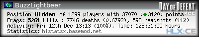 | Rank | Server | Kills | % | Ratio | Deaths | K:D | Headshots | Percentage of Headshots | % | HS:K |