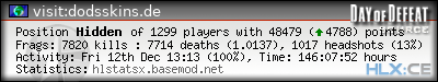 | Rank | Server | Kills | % | Ratio | Deaths | K:D | Headshots | Percentage of Headshots | % | HS:K |