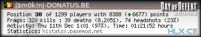 | Rank | Server | Kills | % | Ratio | Deaths | K:D | Headshots | Percentage of Headshots | % | HS:K |