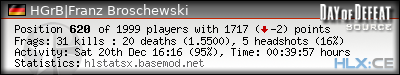 | Rank | Server | Kills | % | Ratio | Deaths | K:D | Headshots | Percentage of Headshots | % | HS:K |