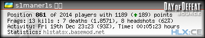 | Favorite Server:* | »» 24/7 Donner only! // by www.BASEMOD.net [EU] |