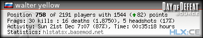 | 1 | »» 24/7 Sniper Server // by www.BASEMOD.net [EU] | 16 | 53.33% | 9 | 1.7778 | 0 | 0.00% | 0.0000 | ||