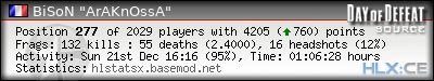 | 2 | »» 24/7 Sniper Server // by www.BASEMOD.net [EU] | 29 | 21.97% | 5 | 5.8000 | 3 | 18.75% | 0.1034 | ||