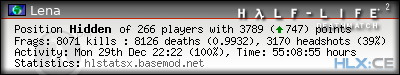 | Rank | Server | Kills | % | Ratio | Deaths | K:D | Headshots | Percentage of Headshots | % | HS:K |