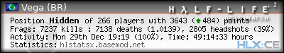 | Rank | Server | Kills | % | Ratio | Deaths | K:D | Headshots | Percentage of Headshots | % | HS:K |