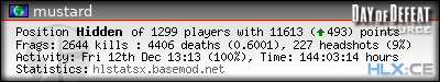 | Rank | Server | Kills | % | Ratio | Deaths | K:D | Headshots | Percentage of Headshots | % | HS:K |