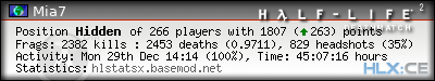 | Rank | Server | Kills | % | Ratio | Deaths | K:D | Headshots | Percentage of Headshots | % | HS:K |