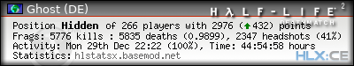 | Rank | Server | Kills | % | Ratio | Deaths | K:D | Headshots | Percentage of Headshots | % | HS:K |