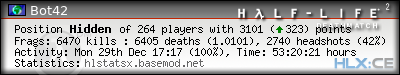 | Rank | Server | Kills | % | Ratio | Deaths | K:D | Headshots | Percentage of Headshots | % | HS:K |