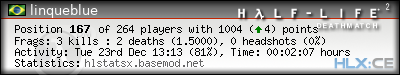 | Rank | Map | Kills | % | Ratio | Deaths | % | Ratio | K:D | Headshots | % | Ratio | HS:K |