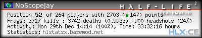 | Rank | Server | Kills | % | Ratio | Deaths | K:D | Headshots | Percentage of Headshots | % | HS:K |