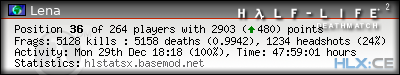 | Rank | Server | Kills | % | Ratio | Deaths | K:D | Headshots | Percentage of Headshots | % | HS:K |