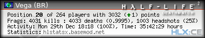 | Rank | Server | Kills | % | Ratio | Deaths | K:D | Headshots | Percentage of Headshots | % | HS:K |