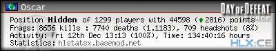 | Rank | Server | Kills | % | Ratio | Deaths | K:D | Headshots | Percentage of Headshots | % | HS:K |
