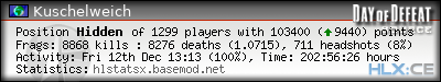 | Rank | Server | Kills | % | Ratio | Deaths | K:D | Headshots | Percentage of Headshots | % | HS:K |