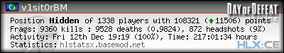 | Rank | Server | Kills | % | Ratio | Deaths | K:D | Headshots | Percentage of Headshots | % | HS:K |