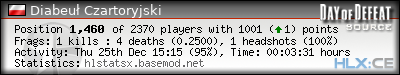 | Rank | Map | Kills | % | Ratio | Deaths | % | Ratio | K:D | Headshots | % | Ratio | HS:K |