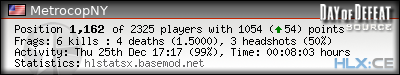| Rank | Map | Kills | % | Ratio | Deaths | % | Ratio | K:D | Headshots | % | Ratio | HS:K |