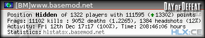 | Rank | Server | Kills | % | Ratio | Deaths | K:D | Headshots | Percentage of Headshots | % | HS:K |