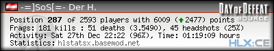 | Rank | Server | Kills | % | Ratio | Deaths | K:D | Headshots | Percentage of Headshots | % | HS:K |