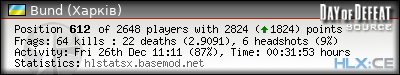 | Rank | Server | Kills | % | Ratio | Deaths | K:D | Headshots | Percentage of Headshots | % | HS:K |