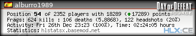 | Rank | Server | Kills | % | Ratio | Deaths | K:D | Headshots | Percentage of Headshots | % | HS:K |