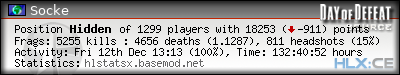 | Rank | Server | Kills | % | Ratio | Deaths | K:D | Headshots | Percentage of Headshots | % | HS:K |