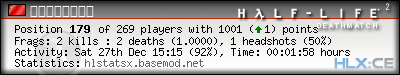 | Rank | Map | Kills | % | Ratio | Deaths | % | Ratio | K:D | Headshots | % | Ratio | HS:K |