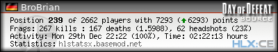 | Rank | Server | Kills | % | Ratio | Deaths | K:D | Headshots | Percentage of Headshots | % | HS:K |