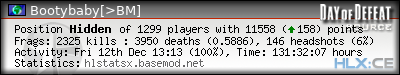 | Rank | Server | Kills | % | Ratio | Deaths | K:D | Headshots | Percentage of Headshots | % | HS:K |