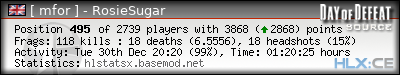 | 1 | »» 24/7 Sniper Server // by www.BASEMOD.net [EU] | 110 | 93.22% | 9 | 12.2222 | 15 | 83.33% | 0.1364 | ||