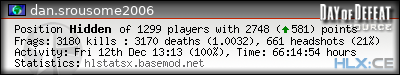 | Rank | Server | Kills | % | Ratio | Deaths | K:D | Headshots | Percentage of Headshots | % | HS:K |