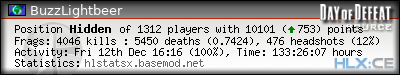 | Rank | Server | Kills | % | Ratio | Deaths | K:D | Headshots | Percentage of Headshots | % | HS:K |