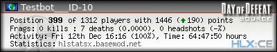 | Rank | Map | Kills | % | Ratio | Deaths | % | Ratio | K:D | Headshots | % | Ratio | HS:K |