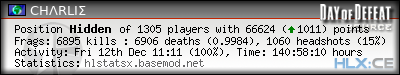 | Rank | Server | Kills | % | Ratio | Deaths | K:D | Headshots | Percentage of Headshots | % | HS:K |