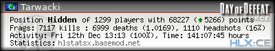 | Rank | Server | Kills | % | Ratio | Deaths | K:D | Headshots | Percentage of Headshots | % | HS:K |