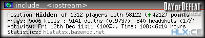 | Rank | Server | Kills | % | Ratio | Deaths | K:D | Headshots | Percentage of Headshots | % | HS:K |
